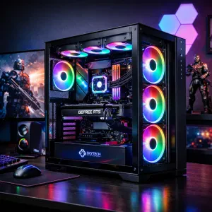 The design of the MSI Codex R2 is sleek and modern. The tower case in a classic black color features customizable RGB lighting, which adds a fun touch to your gaming setup. Whether it’s in your living room or a dedicated gaming space, this desktop will stand out. Plus, it’s not too bulky, so fitting it into your setup shouldn’t pose a problem.